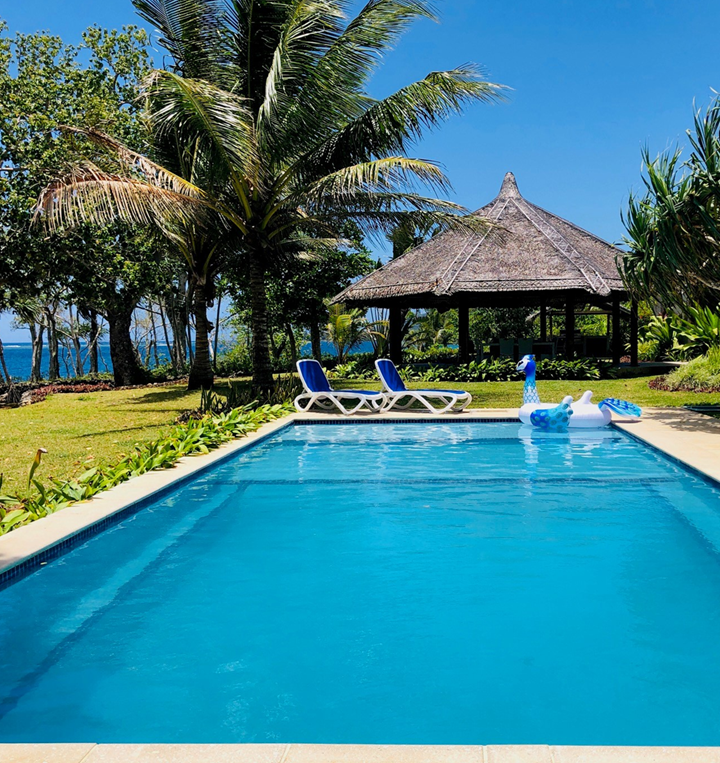 Pool, nakamal, gardens, and shaded dining spaces